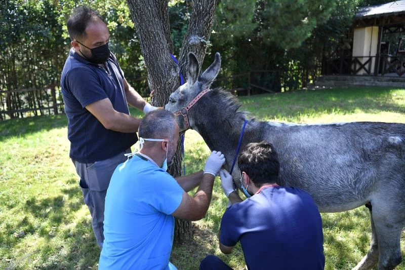 Yapılan muayene sonucunda eşeğin yanan bölgelerinde enfekte yarası oluştuğu ve aynı zamanda testislerinde de yangı olduğu tespit edildi. Eşeğin acilen operasyona alınması gerektiğine karar veren Çevre Koruma ve Kontrol Müdürlüğü’nde görevli veteriner hekimler, yaralı eşeğe operasyon yaptı. Yaklaşık bir saat süren operasyon sonucunda eşeğin yanık bölgelerindeki enfeksiyon temizlenirken, testislerine de gerekli müdahale yapıldı. Eşek, operasyonlar sonrası kısa sürede ayağa kalkarak sağlığına kavuştu.