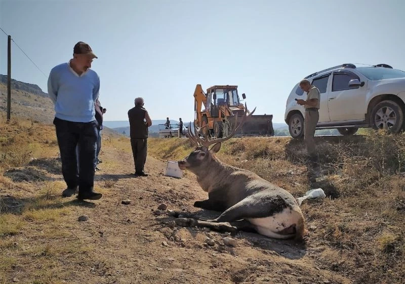 Eskişehir’in Seyitgazi ilçesinde bir aracın çarptığı geyik belediye ekipleri, jandarma ve veterinerler tarafından kurtarıldı.