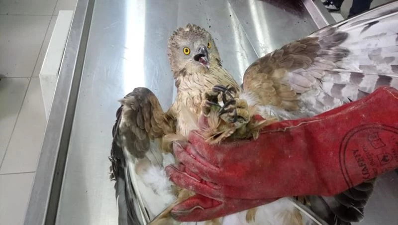 Kafkas Yaban Hayvanı Kurtarma ve Rehabilitasyon Merkezi’nde tedavi altına alınan Arı şahini tedavisi tamamlandıktan sonra tekrar doğal ortamına bırakılacak.