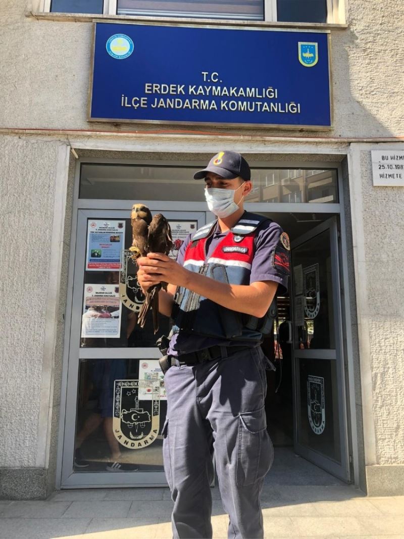 Erdek Tarım ve Orman İlçe Müdürlüğü ile irtibat kuran jandarma ekibi, yaralı kuşu veteriner ekibe teslim ederek, Doğa Koruma Milli Parklar Şefliği’ne teslim edilmesini sağladı.
