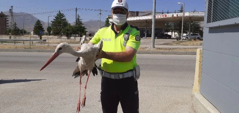 Kahramanmaraş’ın Elbistan ilçesinde kontrol noktası yakınında polisler tarafından bulunan yaralı leyleğe şefkat eli uzandı.