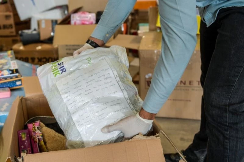 Görevlilerin ve gönüllülerin yaptığı tasnif işlemi sırasında, özellikle miniklerin gönderdiği bağış paketlerinden, göz yaşartan mektuplar ve notlar da çıkıyor. Her satırı en saf duygularla yazılan bu notlarda, güzel yürekli çocuklar, İzmirli akranlarına, “Bu günler geçecek. Oyuncağımla oyna, mutlu ol. Geceleri uyurken ona sarıl; korkmazsın” mesajları gönderiyor.