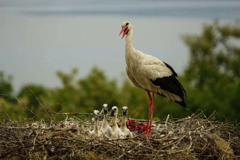 Anne ve baba leylek tarafından yakalanan solucan ve böceklerle beslenen yavrular, doğduktan 58 ile 64 gün sonra palazlanıp yuvadan ayrılıyor. 30 dereceye varan sıcaklıkta fotoğraf sanatçısı Turhan’ın fotoğraf kareleri yavruların sevimliliğini gözler önüne serdi.