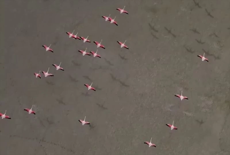 Doğa Koruma ve Milli Parklar 6. Bölge Müdürlüğü, Yarışlı Gölün'deki flamingoları drone ile görüntüledi.