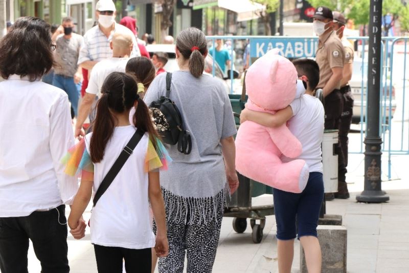 Karabük’te Ramazan Bayramında getirilecek olan 4 günlük sokağa çıkma kısıtlama öncesi aileler çocukları ile birlikte alışveriş merkezlerine akın etti.