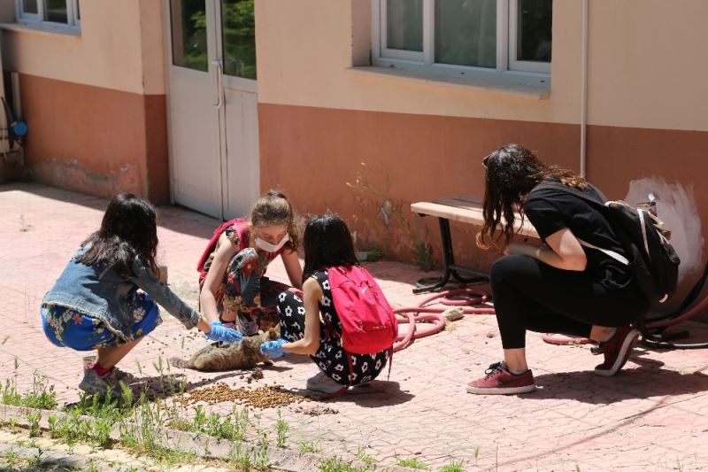 Hayvanların çok sevdiğini dile getiren 10 yaşındaki Elvin Nazlı Özen, “Bugün ikinci kez sokağa çıkıyorum. Yaşıtlarım parklarda oyunlar oynarken ben ve iki arkadaşım burada hayvanları besliyoruz. Bu sıcak günlerde onların mamasız ve susuz kalmamasını istiyoruz. Hayvanları çok seviyoruz” dedi.