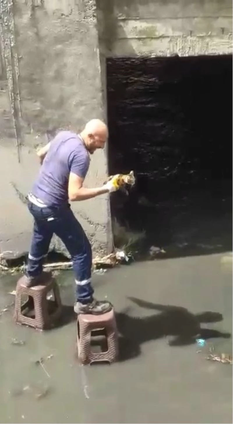 Kocaeli’nin Dilovası ilçesinde Abdulmenaf Çelik isimli hayvansever vatandaş, yavru bir kedinin kanalizasyonda sesini duydu. Mahsur kaldığını anlayan vatandaş kediyi kurtarmak için bir merdiven yardımıyla kanalizasyon çukuruna indi. Yavru kedinin kurtulması için seferber olan Abdulmenaf Çelik ‘in aklına şaşırtıcı bir çözüm geldi. Ayakları, kanalizasyon içerisindeki çamura saplanmasın diye taburelerin üzerine basarak kediyi kısa sürede kurtaran vatandaş, yavru kediyi kanalizasyondan çıkardı. Sağlık durumunun iyi olduğu öğrenilen yavru kedi, tekrar doğal ortamına bırakıldı.