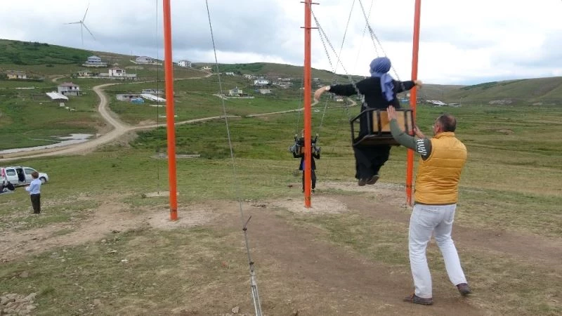Tokat’ın Reşadiye ilçesinde yaylada kurulan dev salıncağa binenler farklı bir heyecan yaşıyor.