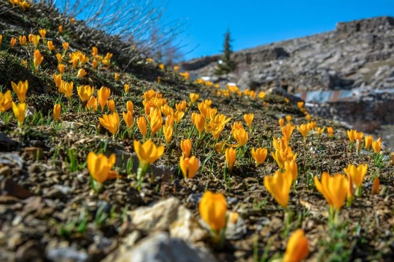 Konya’nın Toros Dağları üzerine kurulu ilçelerinde ilkbaharın habercisi olarak bilinen ve yaylaya göçme vaktini haber veren sarı çiğdemler çiçek açtı.