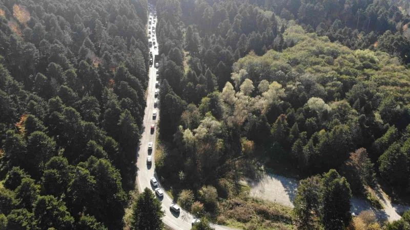 Bolu’da, yazdan kalma günler yaşayan gözde turizm merkezi Gölcük Tabiat Parkı tatilci akınına uğradı. Tatil yolunda oluşan kilometrelerce araç kuyruğu havadan görüntülendi.
