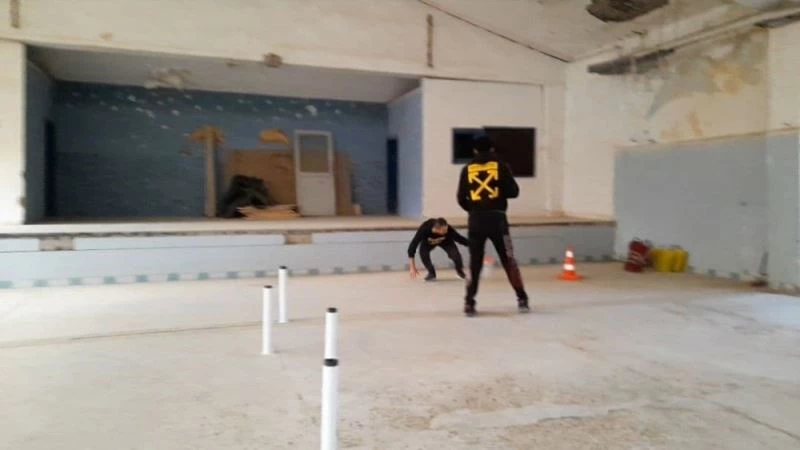 Mazıdağı ilçesinde kapalı spor salonu olmadığı için 27. dönem POMEM fiziki yeterlilik sınavına hazırlanan adaylar kondisyon ve parkur çalışmalarını kullanılmayan eski bir yemekhane salonunda gerçekleştiriyor. POMEM eğitimi almak isteyen adaylar Kickboks ve Fitness Eğimeni Ömer Ekinci’ye müracaat etti. Ancak Fitness Eğitmeni Ekinci’nin adayları hazırladığı ve eğitim verdiği fitness salonu, parkur için elverişli olmadığından Ekinci, Mazıdağı Milli Eğitim Müdürlüğüne çalışmaları için yer talebinde bulundu. Milli Eğitim Müdürü Mehmetşah Aydıner, parkur çalışmalarını yerine getirmeleri için Fitness Eğitmeni Ömer Ekinci’ye Yatılı İlköğretim Bölge Okulunun eskiden yemekhane olarak kullanıldığı salonu kullanmaları için izin verdi. Adaylar sınava hazırlık aşamasında heyecanlı olduklarını ancak, zeminin elverişli olmadığından verimli çalışamadıklarını söyledi.