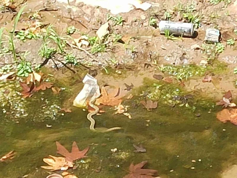 Adıyaman’ın Gölbaşı ilçe merkezinde bulunan yemişen deresinde görülen yılan paniğe neden oldu.
