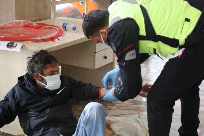 Antalya’nın Muratpaşa ilçesi, Milli Egemenlik Caddesi üzerinde bir apartmanın altında serdiği kartonlar üzerinde yatarak “canım acıyor” diye bağıran vatandaş, mahalle sakinleri tarafından polis ve sağlık ekiplerine bildirildi. Kısa süre sonra olay yerine gelen sağlık ekipleri tarafından ilk müdahalesi yapılan K.G isimli şahsın uzun süredir sokaklarda yaşadığı tespit edildi. Evsiz vatandaş, olay yerine gelen polis ekiplerine “yemek yok içmek yok gece dışarıda yatıyorum” dedi. Polis ekipleri, evsiz vatandaşın bu serzenişi üzerine belediyeyi arayarak durumu bildirdi. Sağlık ekiplerinin maskeni tak, sigaranı söndür, tedavini yapalım demesi üzerine “hastaneye gideceğim de bi sigaraya içeyim” diyen K.G., ekiplerin ısrarı üzerine sigarasını bıraktı. Olay yerinde yapılan ilk müdahalesinin ardından ambulans ile hastaneye kaldırılan şahıs, hastanede yapılacak olan tedavisinin ardından belediyenin evsizler için tahsis ettiği evlere yerleştirilecek.