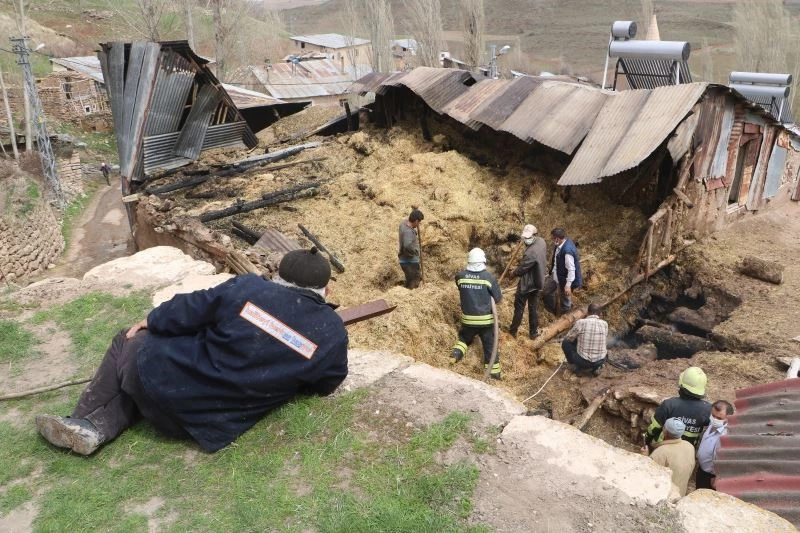 Sivas’ın Kolluca köyünde samanlıkta çıkan yangını yere uzanıp film seyreder gibi izleyen vatandaş, görenlerin dikkatini çekti.
