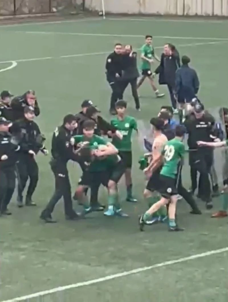 Kocaeli’nin Gebze ilçesinde, U16 Elit Liginde Beylikbağı ile Çayırovaspor karşı karşıya geldi. Maçın ardından iki takım oyuncularının arasındaki gerginliğe çevik kuvvet müdahale etti.