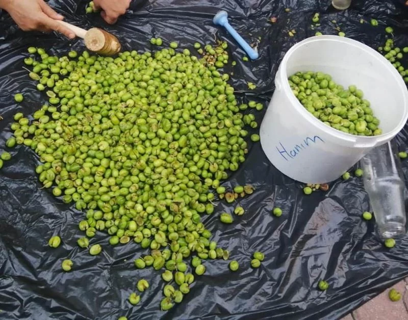 Kilis’te, zeytin bahçelerinden toplanan yeşil zeytinler tatlandırılarak, sabah kahvaltılarda tüketiliyor.