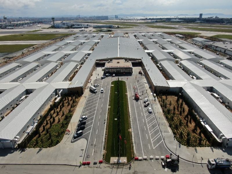 Korona virüsle mücadele kapsamında yapımı devam eden Yeşilköy Pandemi Hastanesindeki çalışmalarda sona gelindi. Açılışa günler kalan hastanedeki son durum havadan görüntülendi.