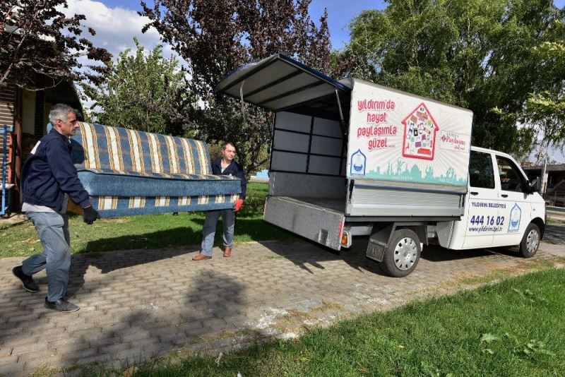 Yıldırım Belediyesi, Paylaşım Atölyesi ile gönüllü bağışçıların eşyalarını ihtiyaç sahiplerine ulaştırmayı sürdürüyor. Bu kapsamda Yıldırım Belediyesi Sosyal Destek Hizmetleri Müdürlüğü ekipleri, sürdürdüğü ikinci el eşya toplama ve bunları ihtiyaç sahipleriyle buluşturma çalışmalarında çekyat, halı, koltuk, masa, sandalye gibi eşyalardan buzdolabı, televizyon, çamaşır makinesi, bulaşık makinesi gibi beyaz eşyaya kadar tüm bağışları ihtiyaç sahiplerine ulaştırıyor. Yıpranmamış, kırılmamış, temiz ve kullanılabilir halde olan eşyalar görevli belediye personeli tarafından uygunluğu onaylandıktan sonra bağışçı vatandaşların adreslerinden ücretsiz olarak teslim alınarak yoksul ve ihtiyaç sahibi vatandaşların evlerine ulaştırılıyor.