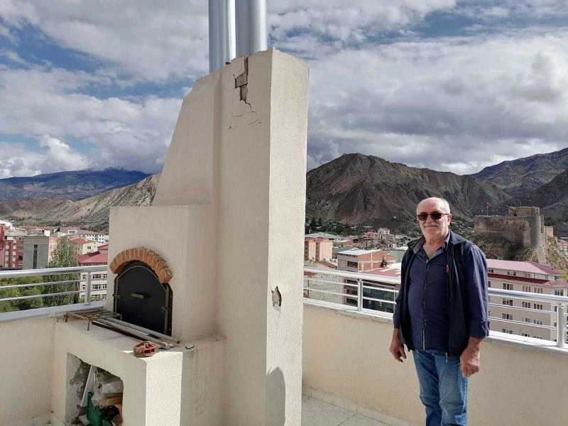 Erzurum’un Oltu ilçesinde 7 katlı bir binanın terasında bulunan şömineye yıldırım düştü.