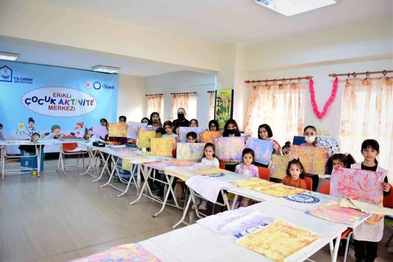 Yıldırım Kaymakamlığı, Yıldırım İlçe Milli Eğitim Müdürlüğü ve Yıldırım Halk Eğitim Merkezi Akşam ve Sanat Okulu ile birlikte düzenlenen kurslarda 7-16 yaş grubundaki çocuklar tiyatro-drama, akıl ve zeka oyunları, satranç, mangala, gitar, çocuk korosu, ebru ve resim branşlarında eğitimler alıyor. Çocukların eğitim yaşamlarının yanında sosyal ve kültürel açıdan da donanımlı bireyler olarak yetişmesine katkı sağlamak amacıylaçalışmalar yürüten Yıldırım Belediyesi, merkezde eğitim gören çocuklara yönelik ebru sanatının detayları için etkinlik düzenledi. Düzenlenen etkinlikte ile çocuklar, ebru sanatının renkli dünyasına adım attılar.
