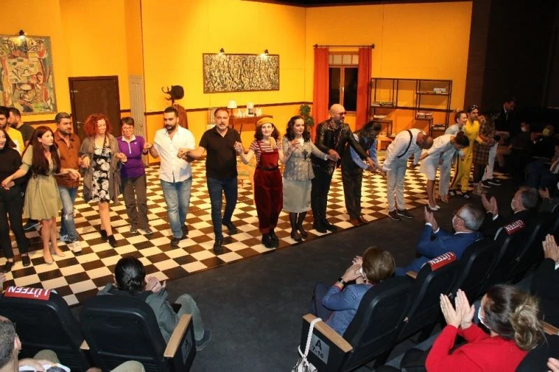 Pandemi tedbirleri kapsamında oyun öncesi ateş ölçümü yapılarak ve maskeli salona alınan vatandaşlar koltukları bir boşluk bırakacak şekilde oturdu. 273 koltuk kapasitesine sahip yeni salonda pandemi nedeniyle 136 seyirci oyunu izleyebildi. Tek perdelik ‘Takıntılar’ adlı oyunda zaman zaman günlük hayatı olumsuz etkileyen takıntılar yer yer mizahi bir dille seyirciye sunuldu. Büyük beğeni toplayan oyun sonunda AŞT’li oyuncuların performansı tiyatro severler tarafından ayakta alkışlandı. Laurent Baffie’nin yazdığı bir Fransız komedisi olan ‘Takıntılar’ın yönetmenliğini Deniz Hamzaoğlu yapıyor.
