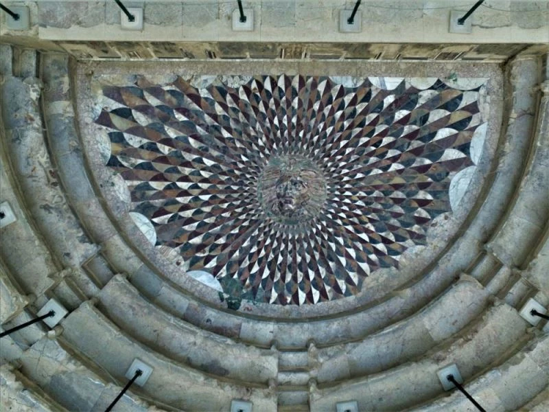 Milattan sonra 1. yüzyilin ilk evrelerinde "Opus Sectile" teknigiyle renkli mermerlerden insa edilen mitolojide "Gözlerine bakan kötü niyetli kisileri tasa çevirdigine" inanilan Medusa'yi tasvir eden mozaigin dünyada benzerinin bulunmadigi belirtiliyor. Antik dönemde konser alani, meclis, mahkeme ve üzeri kapali tiyatro görevi yapan odeonunun ortasindaki Medusa mozaigi, ihtisamiyla normallesme döneminde de ziyaretçilerden ilgi görüyor.