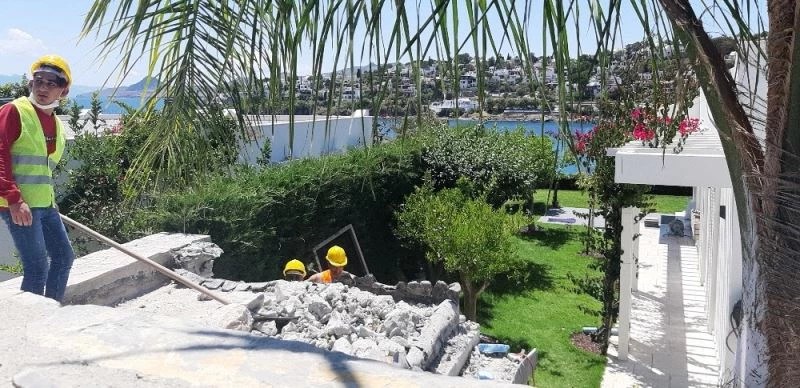 Gazeteci Yılmaz Özdil’in Bodrum’un Bitez Mahallesi’nde bulunan milyon dolarlık villasının kaçak bölümlerinin yıkımı 2 gündür devam ediyor.