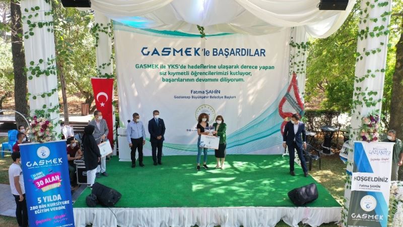 GASMEK’te aldıkları eğitimle ilk 20 bine giren Melih Alçık ve Betül Arslan ise Büyükşehir Belediye Başkanı Fatma Şahin’e ve ekibine pandemi döneminde sağladıkları uzaktan eğitim sistemi olan RAUNT hizmeti için teşekkürlerini ileterek, derece almalarındaki en büyük payın GASMEK öğretmenlerinin öğrencilerle yakından ilgisi ve uzaktan eğitim sistemi olduğunu ifade ettiler.