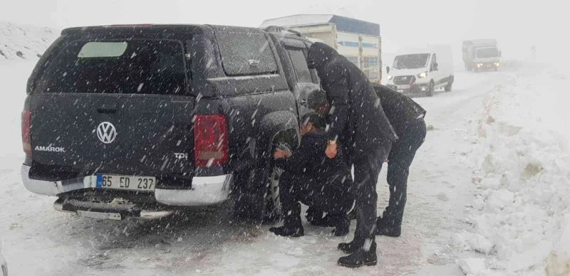 HAKKARİ – Hakkari’nin Derecik ilçesinde yoğun kar, sis ve tipiden dolayı onlarca araç yolda mahsur kaldı.
