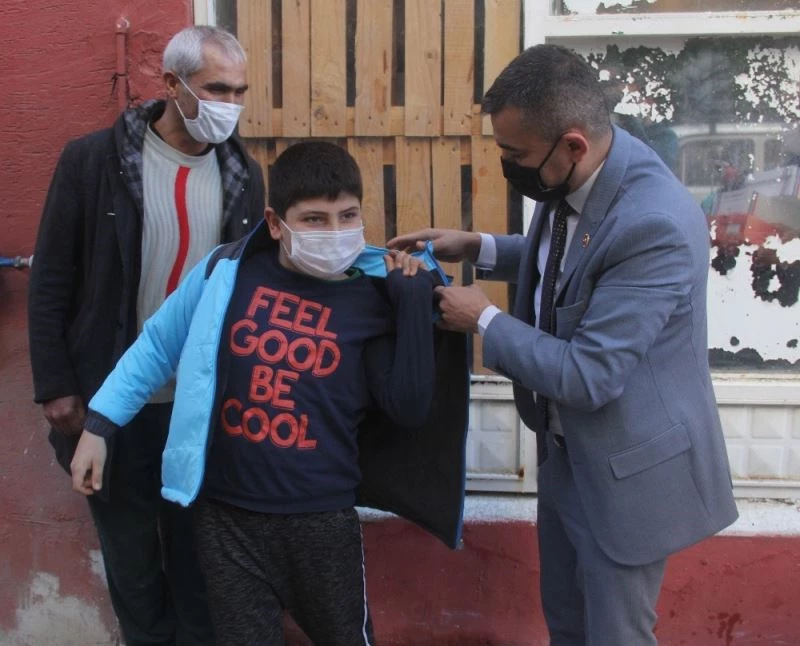 Muhtar daha sonra ise Yakup Kurt’un biri üniversite okuyan diğeri ise 7 yaşındaki iki kız çocuğuna mont ve ayakkabı verdi. Baba Kurt, “Ben okulda temizlik işinde çalışıyorum. Geçici iş olduğu için her zaman çalışamıyorum bu yüzden çocuklarımın ihtiyaçlarını karşılayamıyorum” dedi.