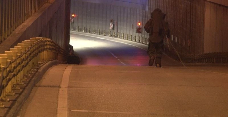 Yol kenarındaki şüpheli poşet fünye ile patlatıldı