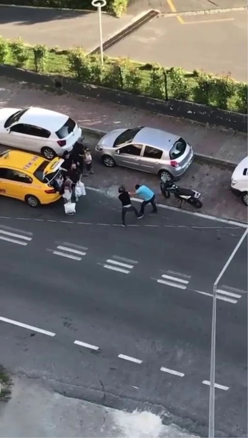 Olay, geçtiğimiz Pazartesi günü Beylikdüzü Adnan Kahveci Mahallesi’nde yaşandı. Edinilen bilgiye göre motosiklet sürücüsü ve taksici arasında yol verme nedeniyle tartışma çıktı. Kısa süre sonra kavgaya dönüşen olayda taraflar birbirlerine girdi. Öfkeli motosiklet sürücüsü, taksi şoförüne tekme ve yumruklarla saldırırken, durumu gören çevredeki vatandaşlar tarafları ayırmak için araya girdi. Yaşanan olay motosiklet sürücüsün olay yerinden ayrılması ile son bulurken, yaşanan o anlar cep telefonu kamerasına anbean yansıdı.