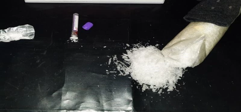 Denizli’ye uyuşturucu madde getiren 2 şüphelinin kullandığı aracın yolcu koltuğunun alt kısmındaki çorap içerisine gizlenmiş 511 gram metamfetamin maddesi ele geçirildi.