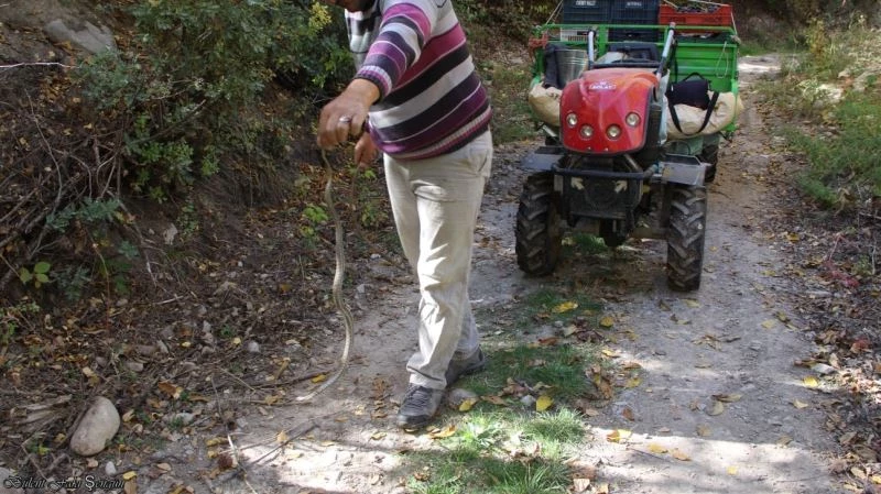Yolda gördüğü yılanı yakalayıp eline aldı ve oynadı