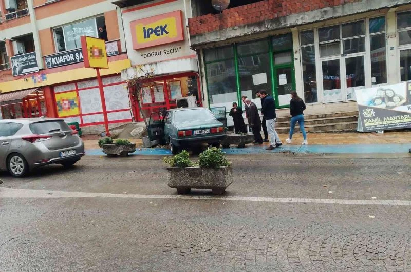 Zonguldak’ın Çaycuma ilçesinde kontrolden çıkan otomobil, markete girmesine ramak kala saksılara çarparak durabildi. Faciadan kıl payı dönülen kaza maddi hasarla atlatıldı.