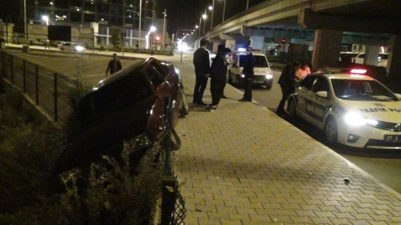 Antalya’nın Serik ilçesinde meydana gelen kazada direksiyon hakimiyetini kaybeden sürücü, tel çitler sayesinde su kanalına uçmaktan kurtuldu.