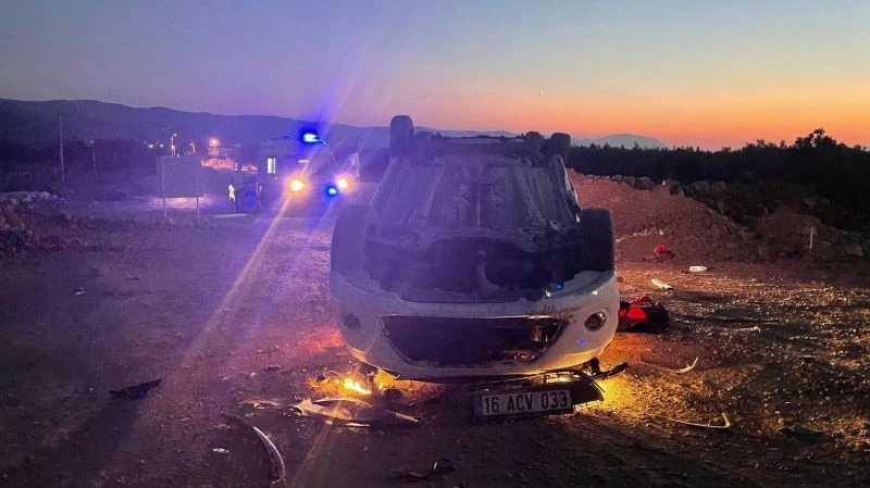 Bursa’da yolun devam ettiğini zanneden sürücünün kullandığı otomobil yol yapım çalışma alanına uçarak takla attı. Kazada sürücü hafif şekilde yaralandı.