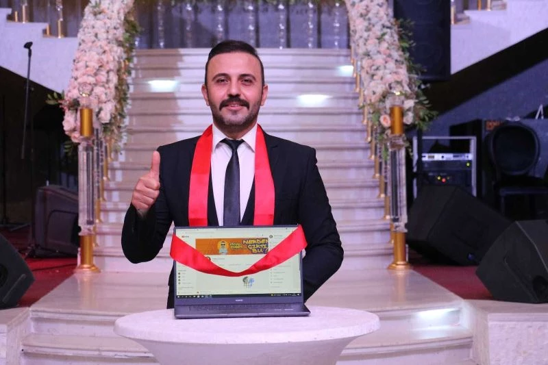 Kahramanmaraş’ta bir kişi, sosyal medya kanalının açılışını kurdele keserek yaptı. Açılışa katılan Youtuber’ın arkadaşlar, sosyal medyaların logolarını hediye etti.