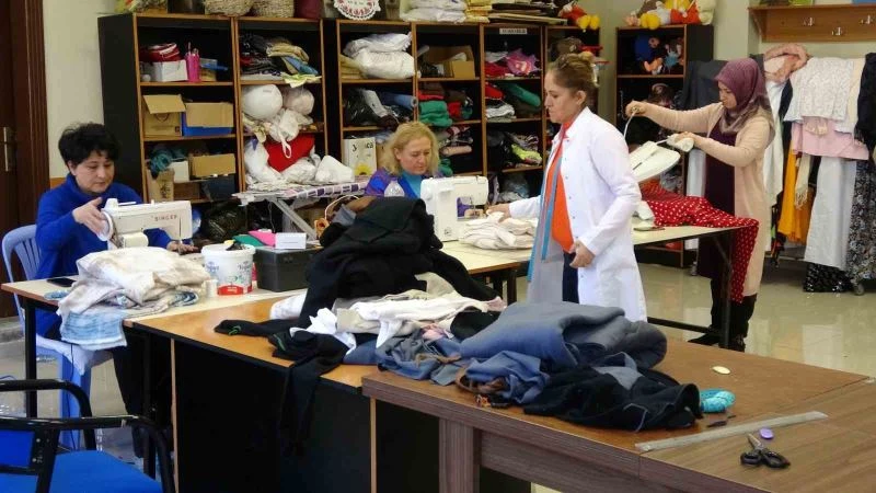Yozgat’ta kadınlar depremzedeler için kıyafet dikiyor