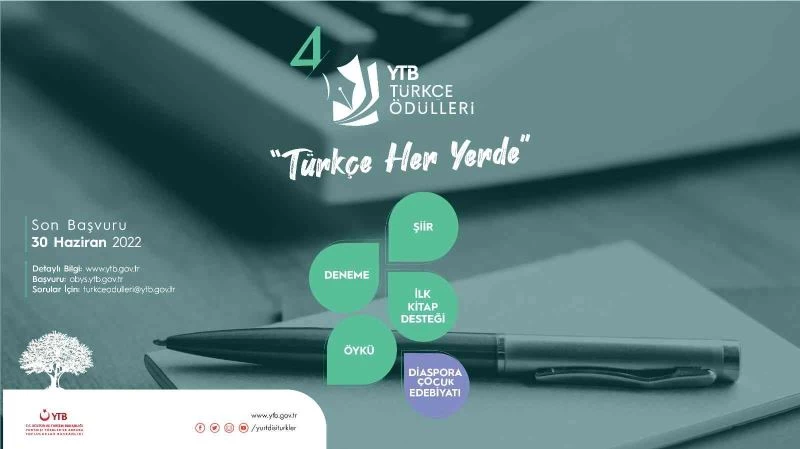 Yurtdışı Türkler ve Akraba Topluluklar Başkanlığı (YTB) Türk Diasporası içerisinde yazın alanındaki yetenekleri keşfetmek amacıyla “YTB Türkçe Ödülleri” yarışmasını düzenliyor. Yarışmaya son başvuru tarihi ise 30 Haziran olarak belirlendi.