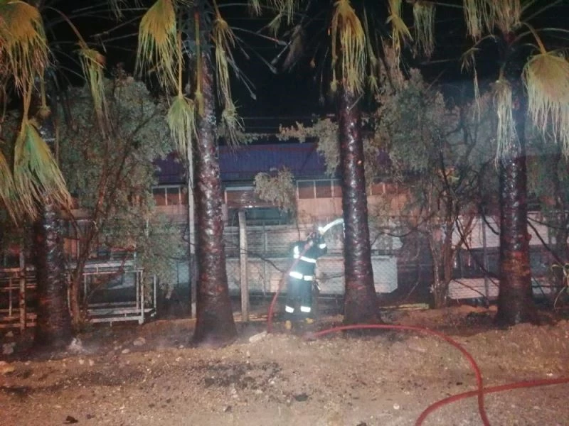 Yangından palmiyelerin önünde karayolu kenarında park halindeki işyerine ait kamyonda nasibini aldı. Palmiyelerden sıçrayan alevler kamyonun sağ kısmının yanmasına neden olurken, kamyonu çalıştırarak uzaklaştıran bir işyeri çalışanı kamyonu tamamen yanmasını önlemiş oldu.