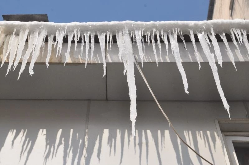 Yüksekova’da dondurucu soğuklar çatılardaki buz sarkıtları yarım metreyi buldu