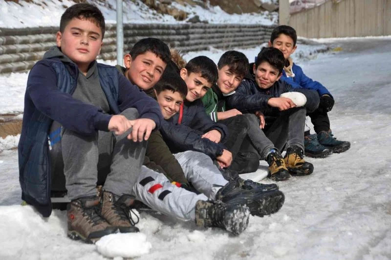 Hafta sonunu değerlendirmek için kar yağışının büyük bir fırsat olduğunu dile getiren çocuklar, “Karın çok olmasını fırsat bilerek arkadaşlarla birlikte temin ettiğimiz poşet, tepsi ve tahtalarla kayarak güzel vakit geçiriyoruz. Derslerimizi de ihmal etmiyoruz” ifadelerini kullandılar.