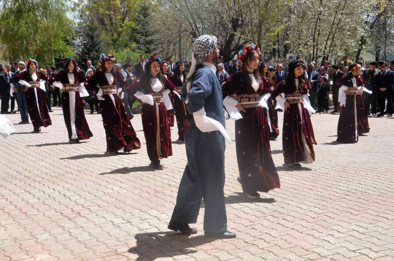 Belediye bahçesinde bulunan Atatürk Anıtı’na çelenk sunulmasıyla başlayan tören, saygı duruşunda bulunulması ve İstiklal Marşı’nın okunmasıyla devam etti. Törende konuşan Şemsettin Onay Anadolu Lisesi Müdürü Cevat İnaç, Yüksekova’nın birçok kültüre ev sahipliği yaptığını belirterek, “Yüksekova, 1. Dünya Savaşı sonunda Rus işgaline uğramış, ilçenin milis kuvvetleri ve ordunun başarısı sonucu 5 Mayıs 1918’de düşman işgalinden kurtulmuştur. 19. yüzyılda Van vilayetine bağlı Hakkari’nin kazası olan Yüksekova, 1936’da ilçe olmuştur” dedi.