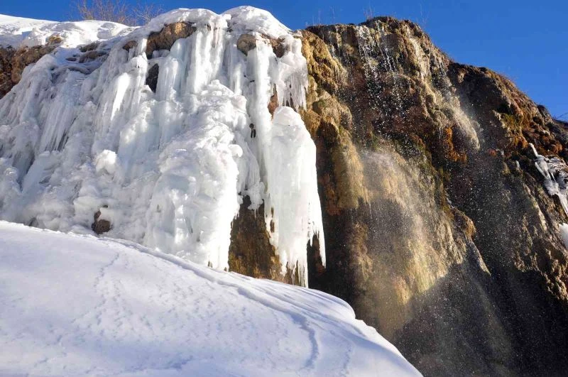 Yüksekova’da kar yağışından sonra etkili olan dondurucu soğuklarla, Doski Vadisinde bulunan şelale görsel şölen oluşturdu. 10 metreyi bulan buz sarkıtlarının oluştuğu şelale doğa ve fotoğraf tutkunlarına görsel şölen sunarken, köydeki vatandaşlar da şelaleyi görmeye gidiyor. Bölgede yaz mevsiminde piknik yapan vatandaşların en çok uğradığı gözde mekânlardan biri olan şelale, kışın da soğuk hava ile birlikte oluşan buz sarkıtlarıyla ziyaretçilerine keyifli anlar yaşatıyor. Vatandaşlar soğuk havaya aldırış etmeden Doski Vadisinde bulunan şelaleye gelerek bir yandan geziyor, bir yandan da bol bol fotoğraf çektirerek o anı ölümsüzleştiriyor.