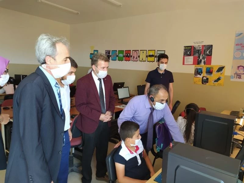 İlçe Milli Eğitim Müdürü İşcan, EBA Destek Noktası olan okullardan Orhan Erdem İmam Hatip Ortaokulunda Fen Bilimleri canlı dersine katılarak online olarak ders öğretmeni ve öğrencilerle görüştü. İşcan daha sonra da IMKB Yatılı Bölge Ortaokulunda Eba Destek Noktasında ders dinleyen öğrencilerle bir araya gelerek Türkçe dersini dinledi. İşcan’ın EBA Destek Noktası ziyaretlerine şube müdürleri Muhammed Ali Tokdemir ve Abdullah Tunçez de eşlik etti.