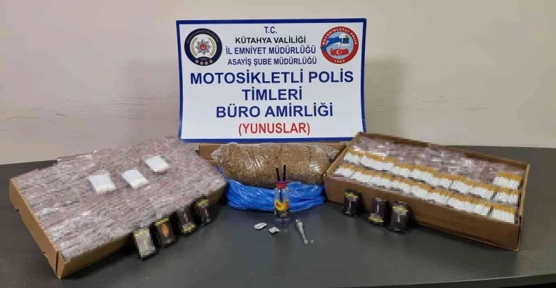 Kütahya’nın Tavşanlı ilçesinde Motosikletli Polis Timleri tarafından bir araçta yapılan aramada, uyuşturucu madde ve kaçak sigara ele geçirildi