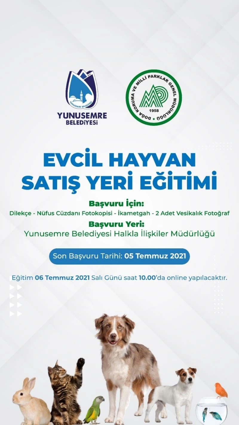 Yunusemre Belediyesi öncülüğünde evcil hayvanların satışı yapmak için işyeri açmak isteyen vatandaşlara yönelik eğitim verilecek.