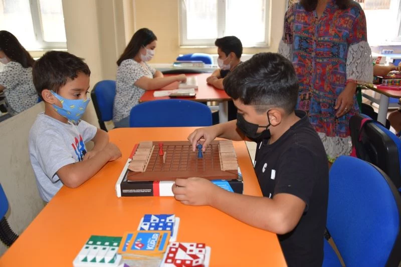 Yunusemre Belediyesi Ayn-ı Ali Meslek Edindirme Kursları ve Hanımlar Lokali’nde akıl oyunları kursu gören çocuklar hem eğleniyor hem de öğreniyor.