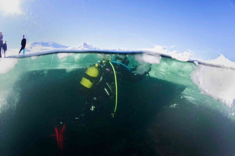 Yüzeyi buzla kaplı olan Balık Gölü dalgıçları ağırladı